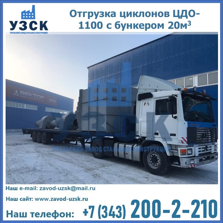 Циклоны ЦДО-1100 с бункером на 20 кубов были отгружены в декабре 2018 года в г. Новосибирск Новокузнецк.