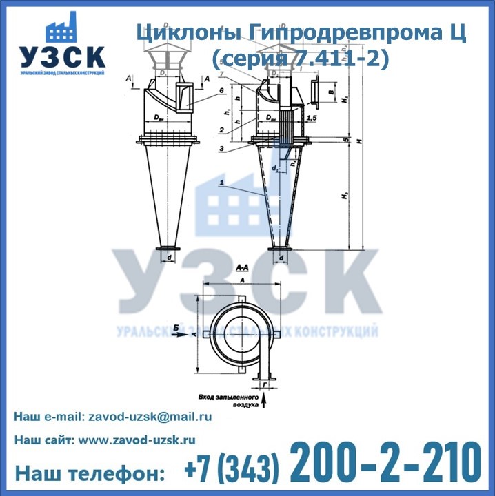 Циклоны Гипродревпрома Ц (серия 7.411-2) высокого качества можно купить в компании «УЗСК» в Новокузнецке. Наши специалисты предоставят всю необходимую информацию информацию и помогут с выбором модели циклона. Подробные технические характеристики, конструкцию, параметры, ассортимент и стоимость продукции можно также найти на сайте УЗСК.