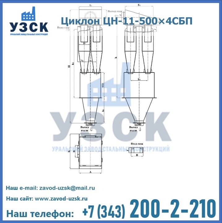 Уральский Завод Стальных Конструкций в Новокузнецке производит и продает надежное, эффективное и производительное оборудование, имеющее длительную гарантию и большой эксплуатационный ресурс. УЗСК также предлагает циклоны из нержавеющей стали высокого качества. По желанию заказчика толщина стали для циклона и бункера может быть увеличена. Заказать и купить циклоны ЦН-11 высокого качества и по доступной цене можно через наш сайт или по указанному в разделе «Контакты» телефону.