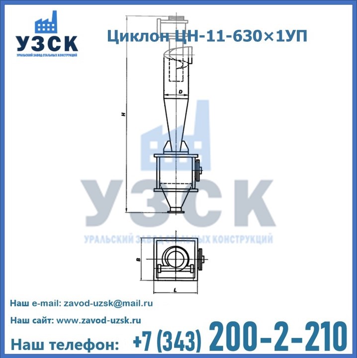 Уральский Завод Стальных Конструкций в Новокузнецке производит и продает надежное, эффективное и производительное оборудование, имеющее длительную гарантию и большой эксплуатационный ресурс. УЗСК также предлагает циклоны из нержавеющей стали высокого качества. По желанию заказчика толщина стали для циклона и бункера может быть увеличена. Заказать и купить циклоны ЦН-11 высокого качества и по доступной цене можно через наш сайт или по указанному в разделе «Контакты» телефону.