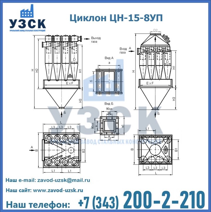 Завод «УЗСК» в Новокузнецке предлагает большой выбор циклонов ЦН-15-500×8УП и прочих устройств, полностью укомплектованных и готовых к эксплуатации. Мы гарантируем соответствие оборудования всем требованиям ГОСТ и ТУ, износостойкость и высокую производительность предлагаемого оборудования. Уральский Завод Стальных Конструкций изготавливает и продает надежное, эффективное и производительное оборудование, имеющее длительную гарантию и большой эксплуатационный ресурс. Если требуется изготовить циклон нестандартных размеров, то такой вариант выполнения заказа тоже предусмотрен, так как предприятие имеет собственные производственные площади и надежных поставщиков. На все поставляемое или производимое оборудование имеются чертежи и прочая техническая документация. Заказать и купить циклоны или прочее оборудование высокого качества и по доступной цене можно через наш сайт или по указанному в разделе «Контакты» телефону.