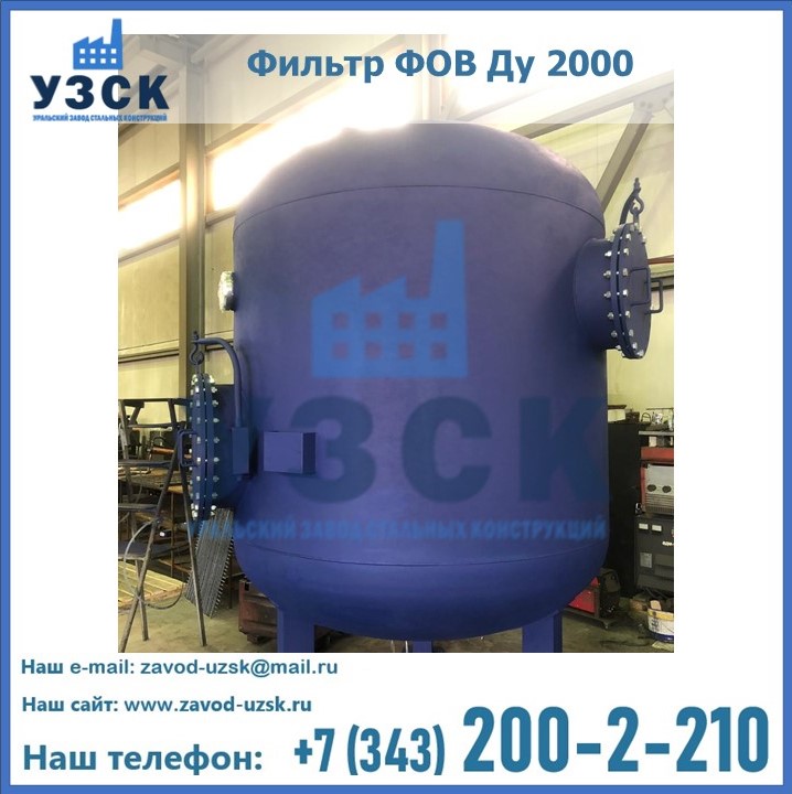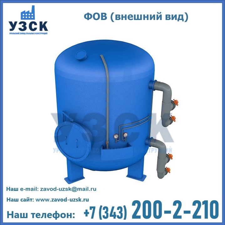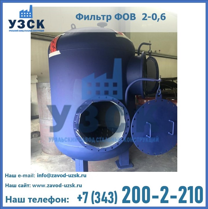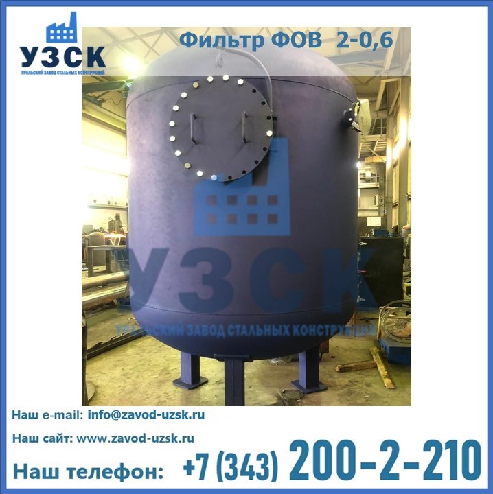 Удаление взвешенных веществ различного уровня дисперсности из рабочих жидкостей эффективно проводит фильтр осветлительный типа ФОВ (скорый или механический) — вертикально-цилиндрической формы установка, разработанная для систем водоподготовки различного класса. Оборудование представляет собой однокамерный агрегат для очистки воды рекомендованный для применения на станциях очистки стоков, в коммунальных котельных, на ТЭЦ, в промышленных отопительных системах и пр. Заказать производство ФОВ фильтров предлагает наш Уральский завод стальных конструкций в Новокузнецке. У нас можно купить фильтрационное оборудование различного класса и типа, в том числе фильтры ФОВ из нержавеющей стали.