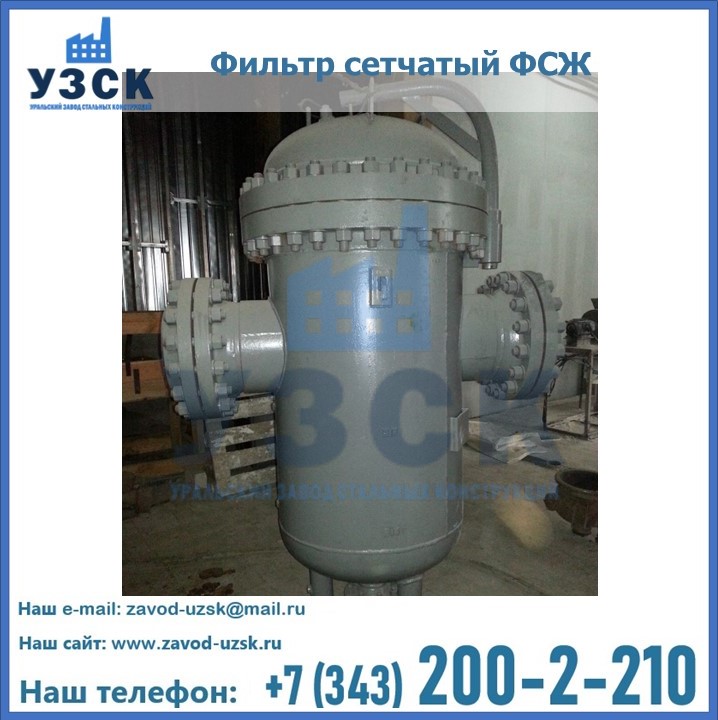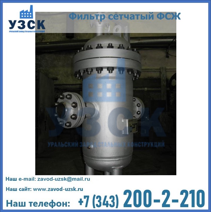 Очистку перекачиваемых жидкостей на предприятиях нефтяной, пищевой, горнорудной, фармацевтической и других отраслей промышленности эффективно выполнять с помощью жидкостного сетчатого фильтра — емкостное оборудование цилиндрической формы со съемной крышкой и элементом фильтрации внутри. Оснащенные им всасывающие линии насосных станций и установок защищены от проникновения твердых частиц в функциональные узлы гидравлической системы. Оборудование служит для перекачивания токсичных, агрессивных и иных эмульсий, суспензий, жидкостей. Купить фильтр сетчатый жидкостный ФСЖ в Новокузнецке с гарантией производителя предлагает «Уральский завод стальных конструкций». Мы выполняем проектирование и изготовление ФСЖ по индивидуальным требованиям (климатическая зона, транспортируемая жидкость).