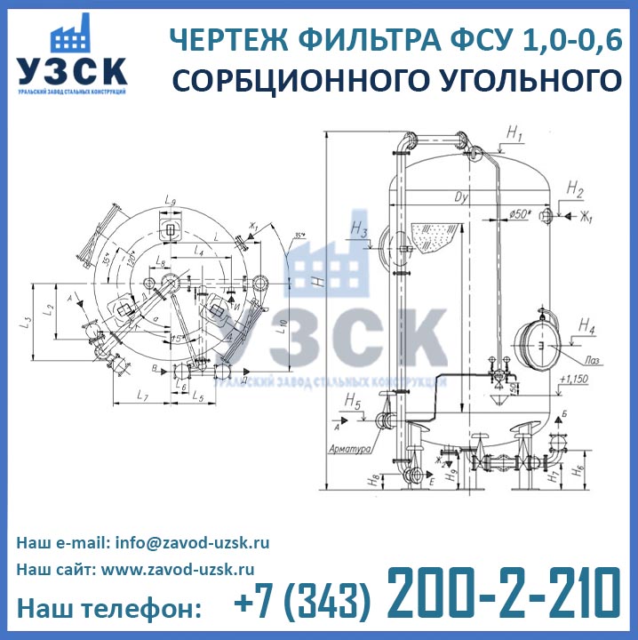 Наш завод (Уральский завод стальных конструкций) является производителем угольных фильтров, сам осуществляет изготовление и реализацию выпускаемой продукции. Приобретая фильтры ФСУ-1.0-0.6 в Новокузнецке от производителя, Вы приобретаете оборудование без наценок всевозможных посредников, а также значительно экономите свое время. Фильтры ФСУ1.0-0.6 завода УЗСК – это гарантия качества, кратчайшие сроки изготовления и цена, которая Вам понравится.