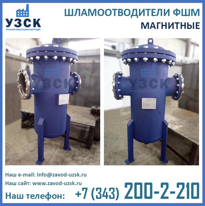 Являясь непосредственным изготовителем фильтров магнитных ФШМ, Уральский завод стальных конструкций предлагает самые низкие цены на шламоотделители ФШМ Ду250 в Новокузнецке. Производство магнитных шламоотводителей осуществляется в самые короткие сроки специалистами сварочного производства НАКС по аттестованной технологии сварки при помощи сварочного оборудования, аттестованного Национальным агентством контроля сварки.